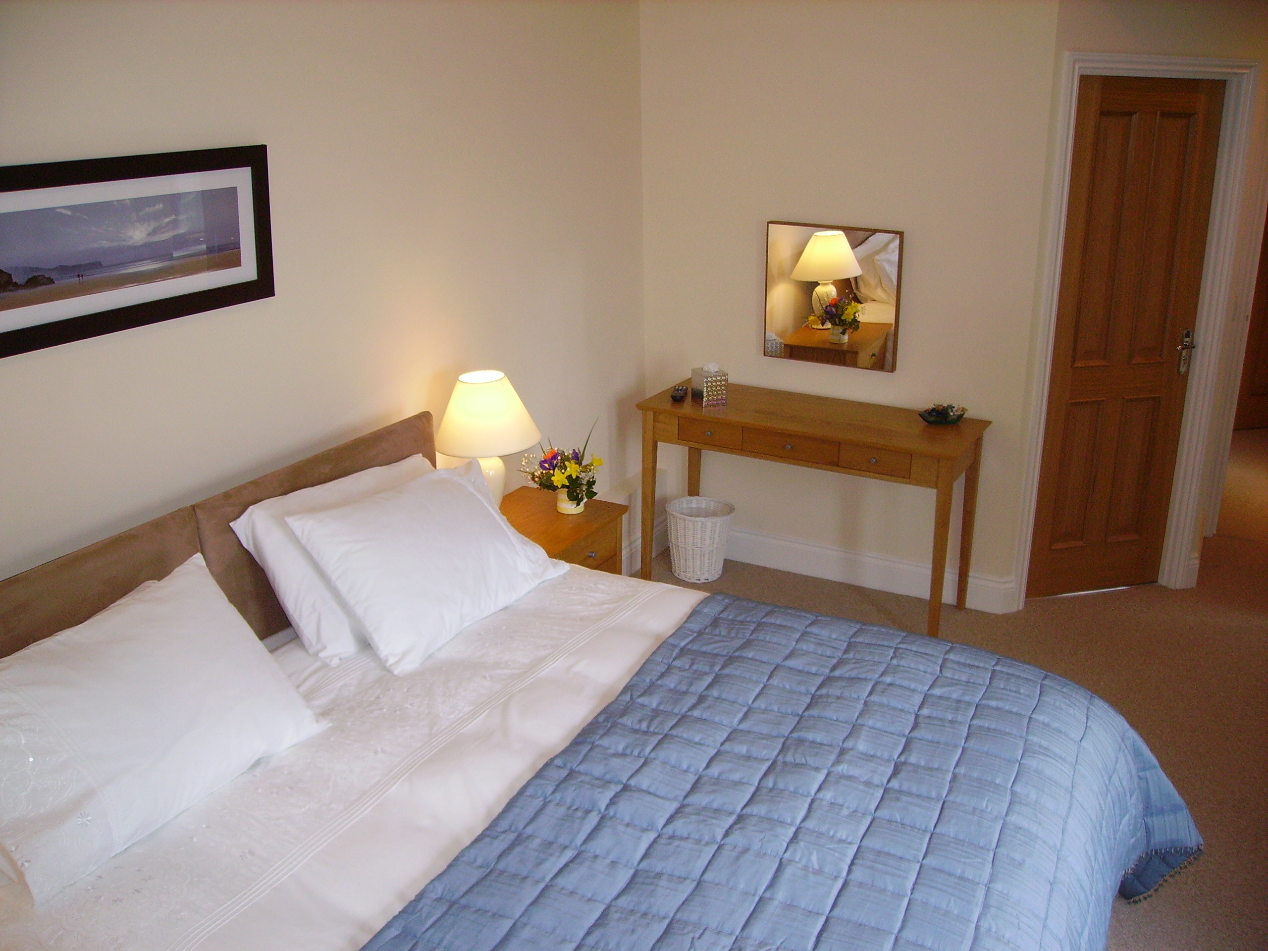 A large light and airy room that overlooks the courtyard garden and the farm fields beyond. Super king size bed, lots of wardrobe storage space, bedside drawers and a dressing table. Flat screen TV with Freeview. Hairdryer. Sleeps 2